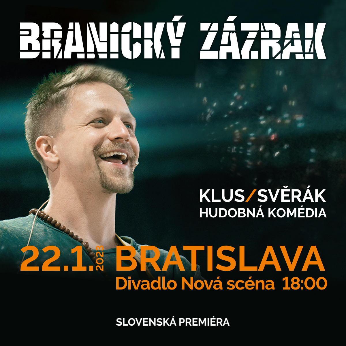 Nový divadelný muzikál Branický zázrak oskarového režiséra Jána Svěráka a Tomáša Klusa má slovenskú premiéru 22./23. januára 2023 v Divadle NOVÁ SCÉNA.